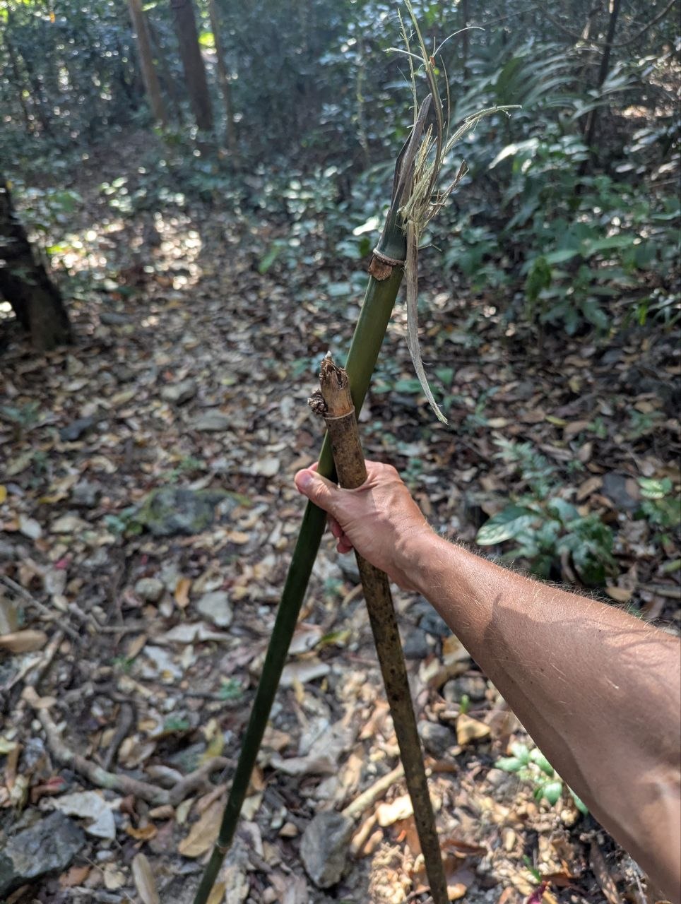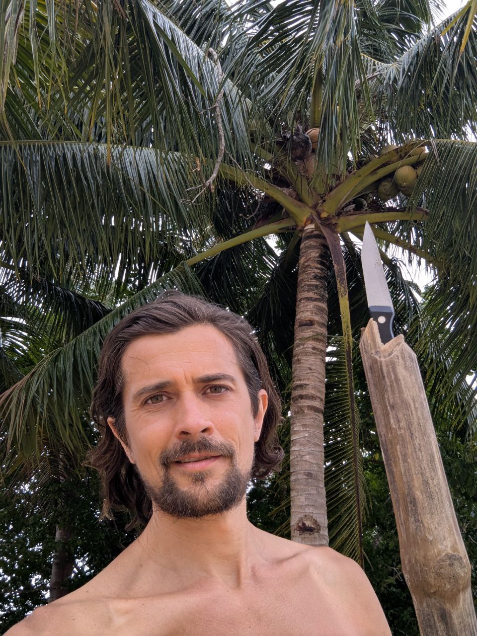 Ein Mann, eine Mission. Das selbstgebaute Speer war am Ende doch nicht nötig, um die Kokosnüsse von der Palme zu holen.