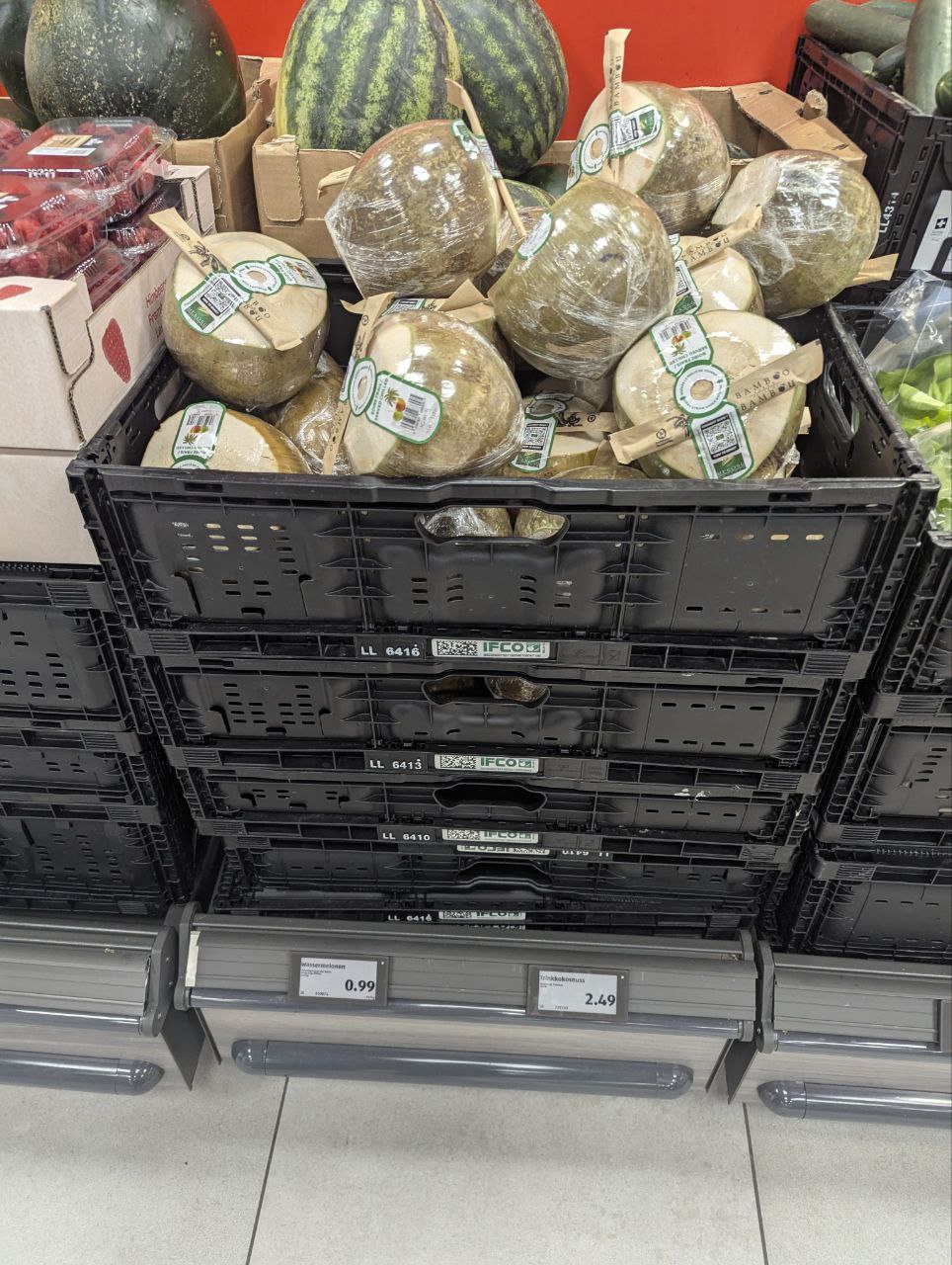Das ist eine durian. Eines der größten Früchte in den Tropen, wenn nicht sogar die größte (und schwerste). Das Fleisch soll zart-cremig und süß sein, aber auch relativ fettig (wie avocado). Werde sie bei Gelegenheit probieren und berichten.