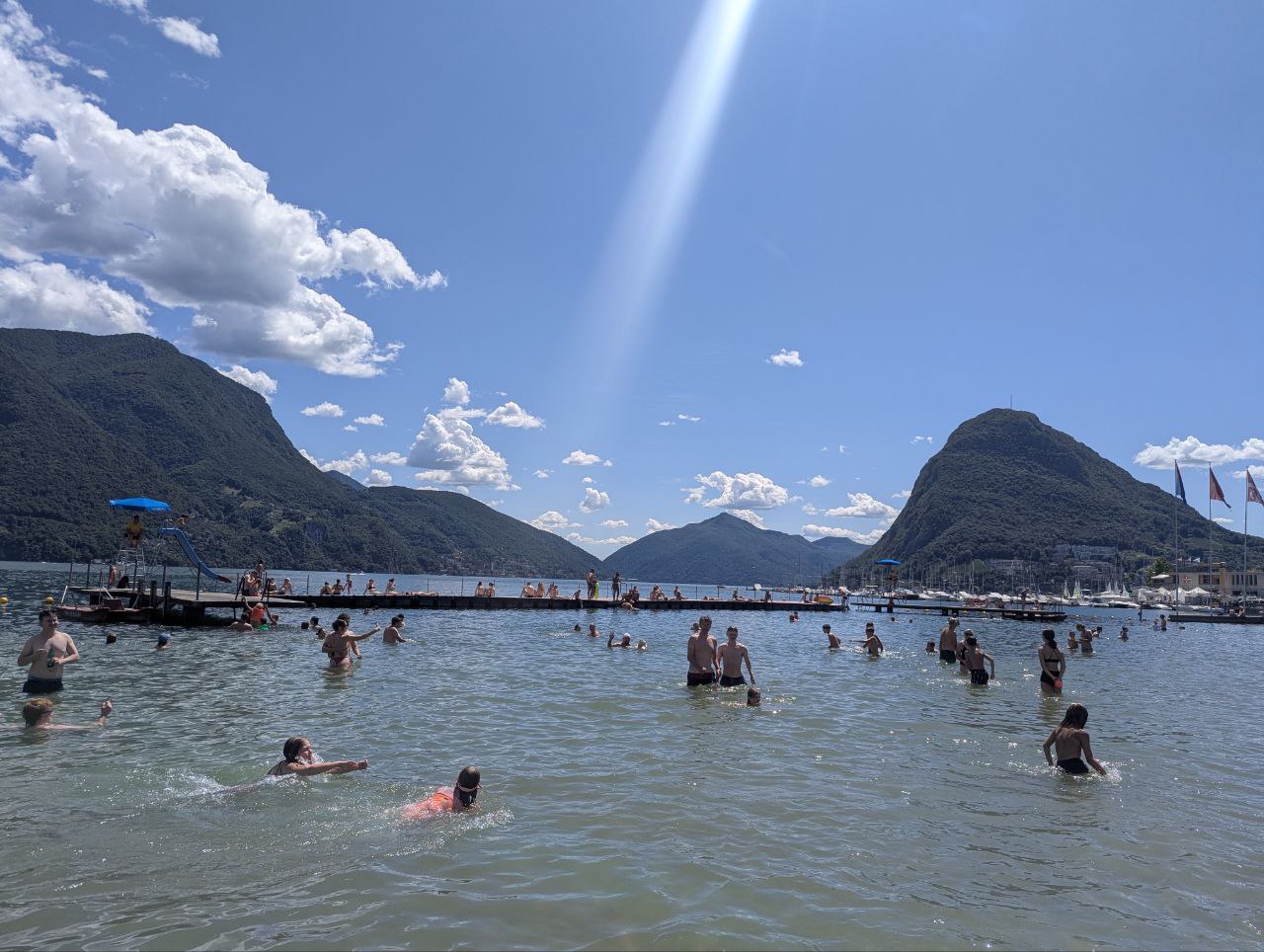 Haben uns ein kleines Erfrischungsbad gegönnt. Wasser war wärmer als gedacht. Ich würde auf 20 Grad schätzen.