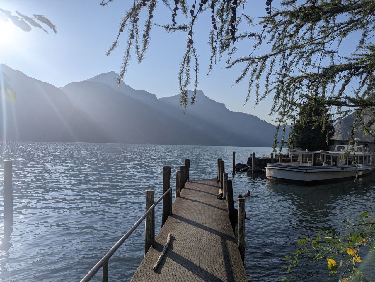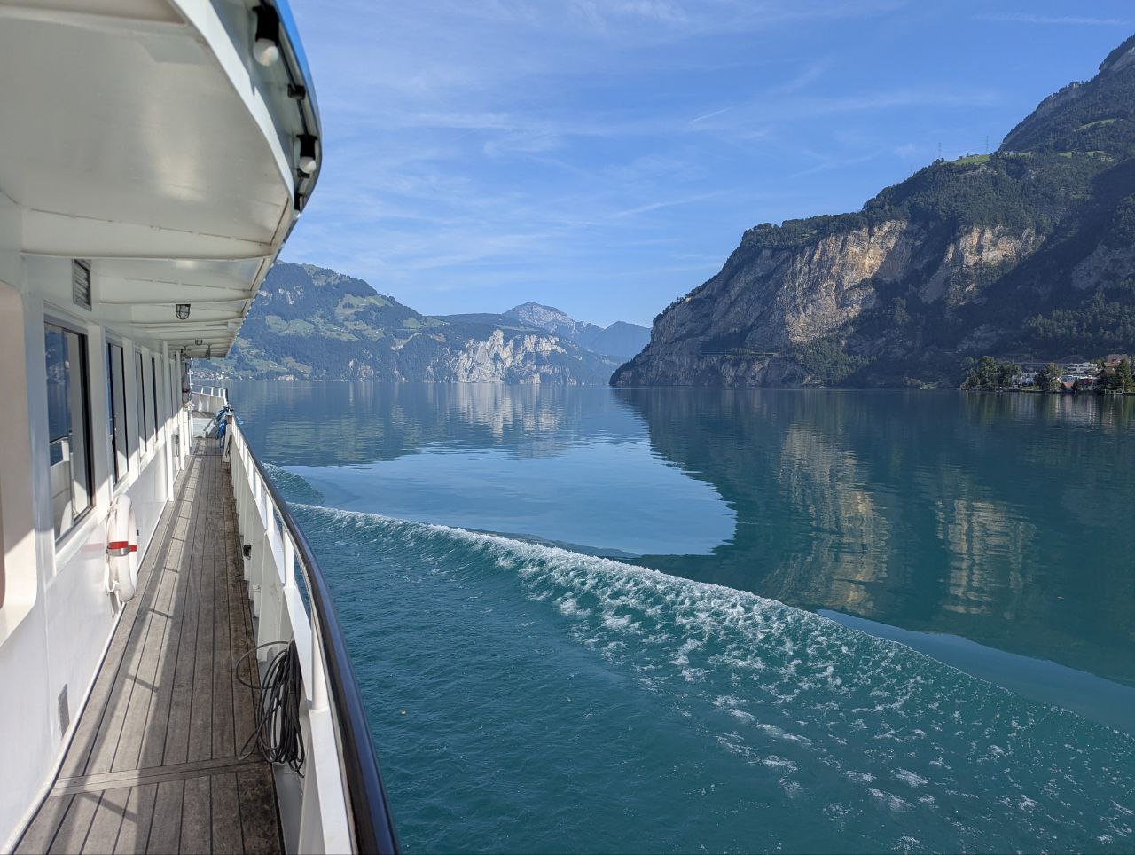 Der Vierwaldstättersee hat viele Arme und geht bis mach Luzern. Wir sind hier auf 1400 Höhenmetern.